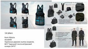 У конкурсі Микита Кузін представив інноваційну розробку спецодягу для авіамеханіків, який трансформується у функціональні сумки для інструментів.