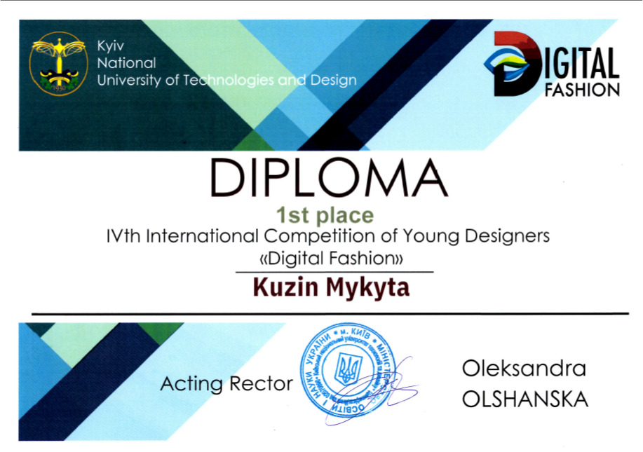 21–28 жовтня 2025 року в Київському національному університеті технологій та дизайну відбувся IV Міжнародний студентський дизайнерський конкурс “DIGITAL FASHION”, який об’єднав учасників із України, Румунії, Болгарії, Грузії, Греції, Португалії, Албанії та інших країн. Першість у номінації “Аксесуари” посів Микита Кузін, курсант 1-го курсу УДЛА, факультету льотної експлуатації, ОПП “Технічне обслуговування та ремонт повітряних суден та авіаційних двигунів”.