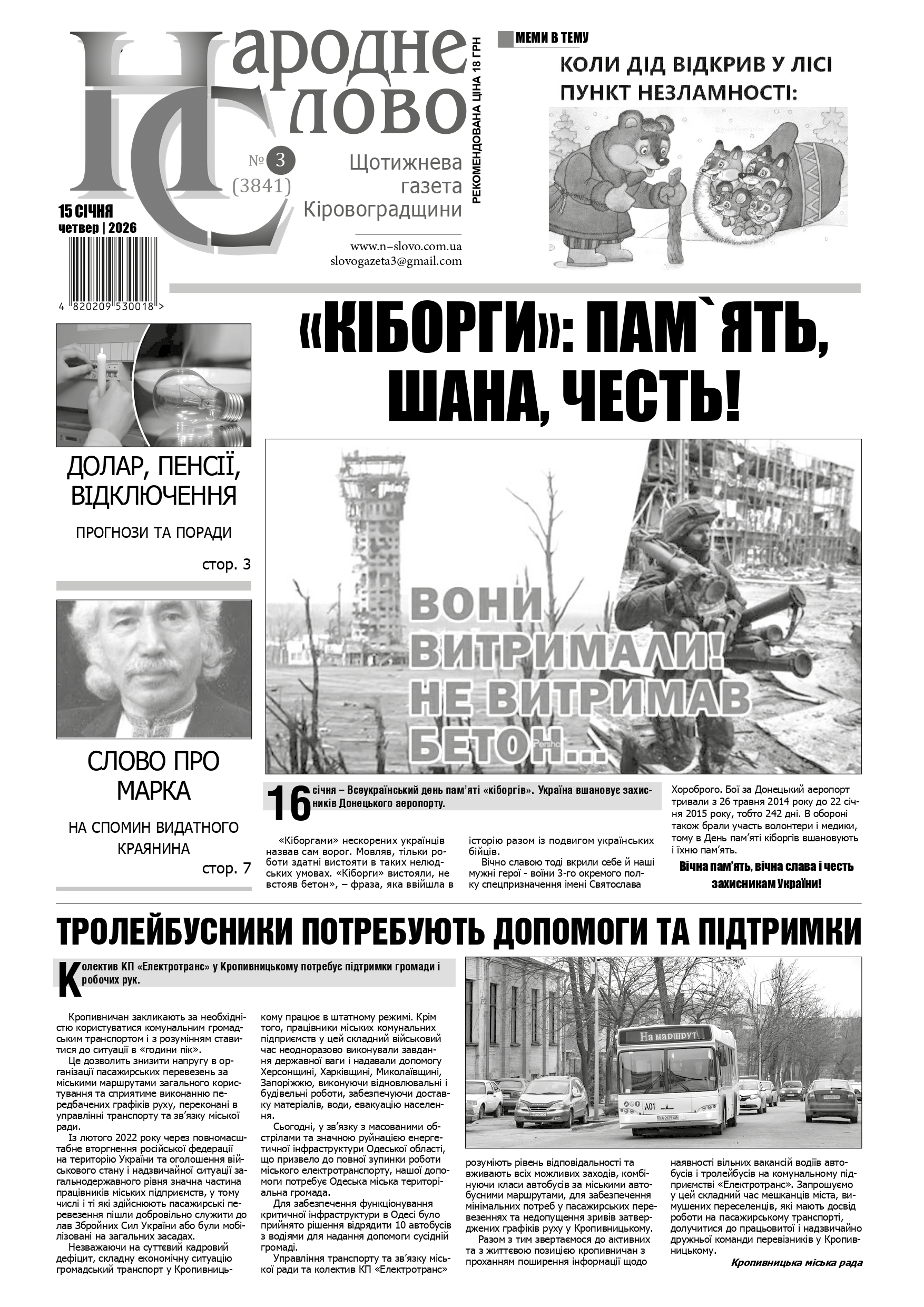 ГАЗЕТА “НАРОДНЕ СЛОВО” №3 ВІД 15 СІЧНЯ 2026 РОКУ