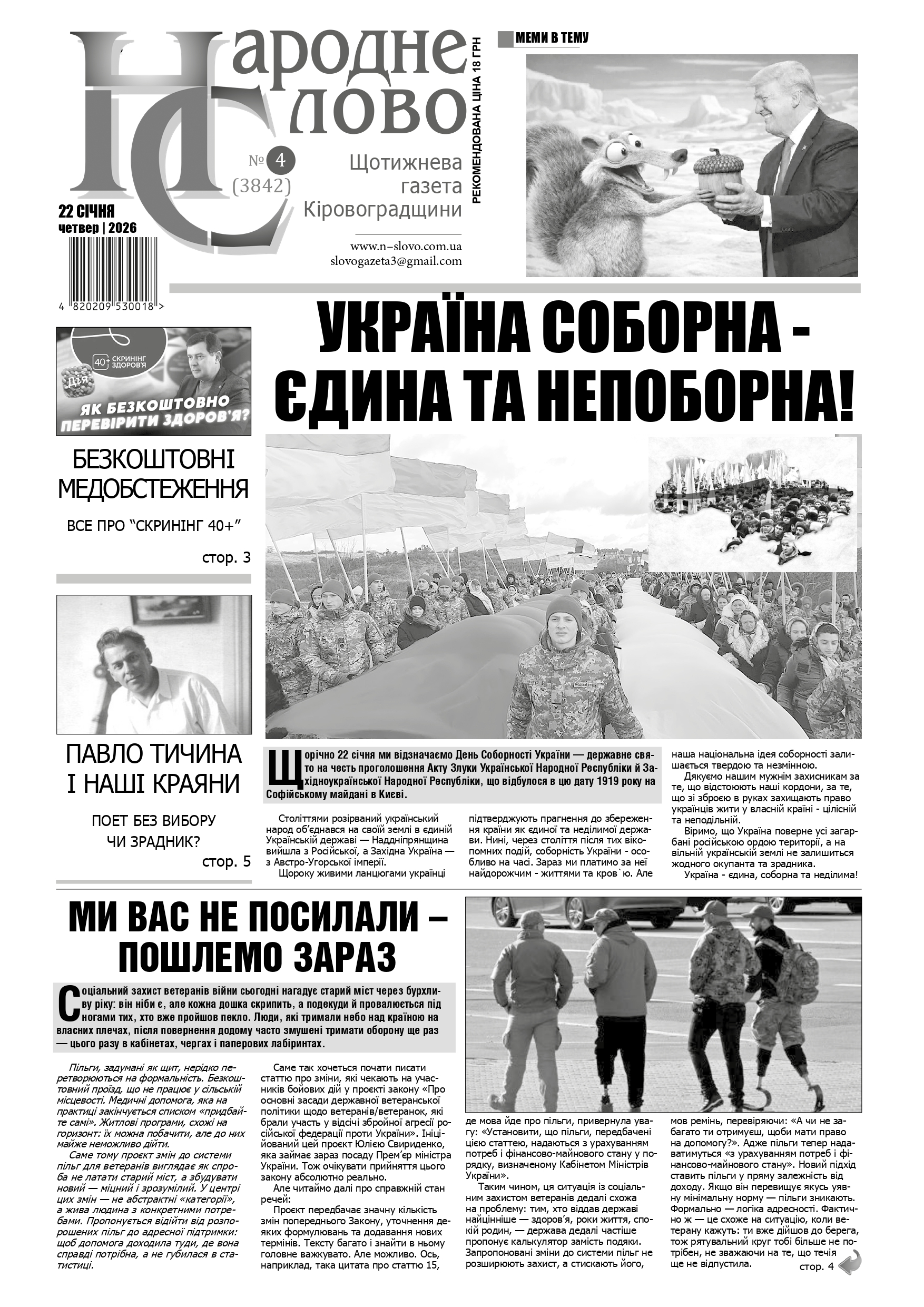 ГАЗЕТА “НАРОДНЕ СЛОВО” №4 ВІД 22 СІЧНЯ 2026 РОКУ