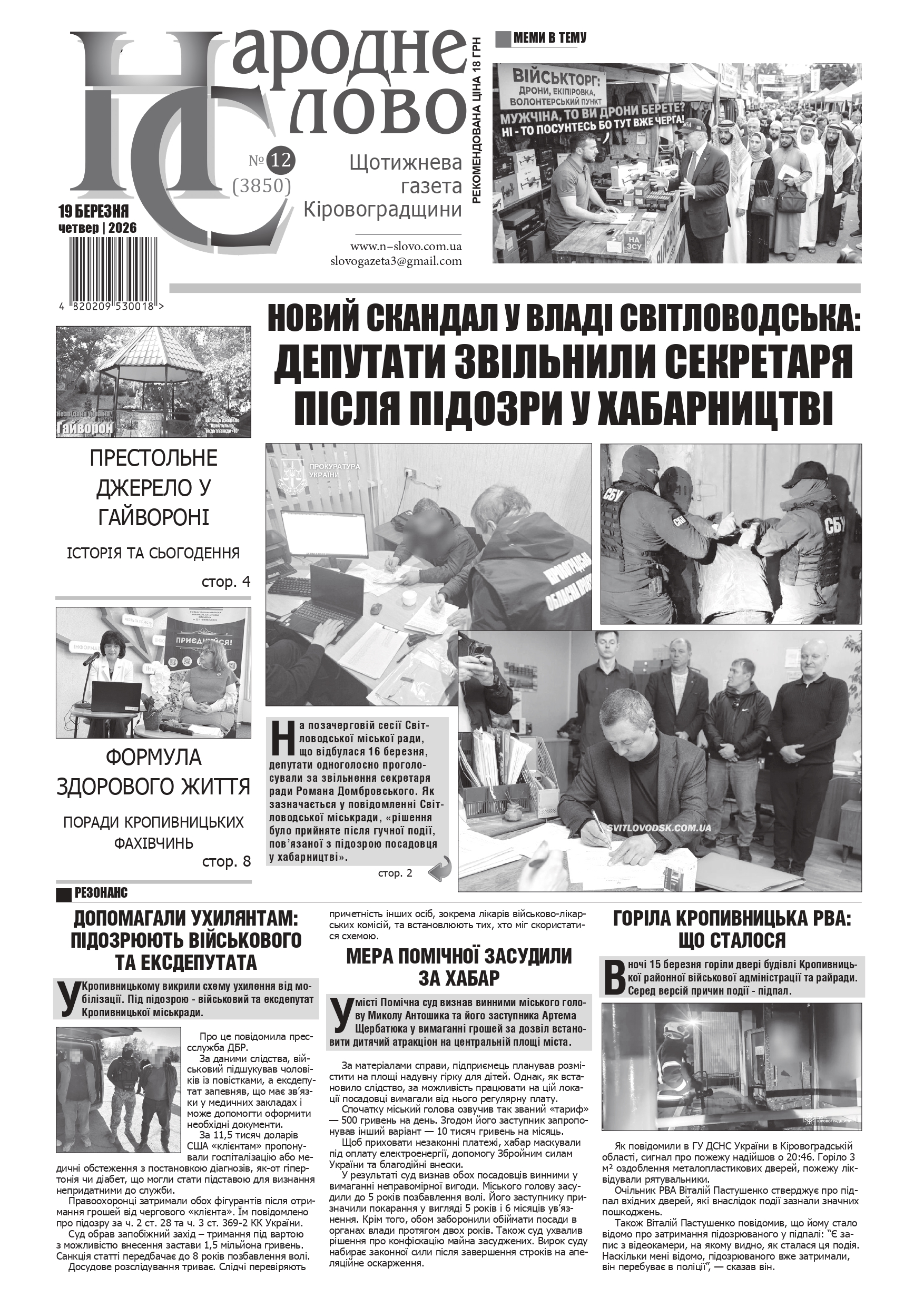 ГАЗЕТА “НАРОДНЕ СЛОВО” №12 ВІД 19 БЕРЕЗНЯ 2026 РОКУ