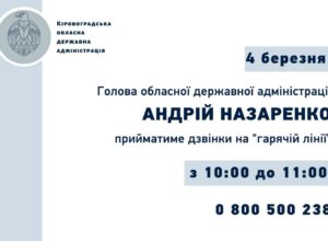ГОЛОВА ОДА АНДРІЙ НАЗАРЕНКО ЗАВТРА ПРИЙМАТИМЕ ДЗВІНКИ ВІД МЕШКАНЦІВ КІРОВОГРАДЩИНИ