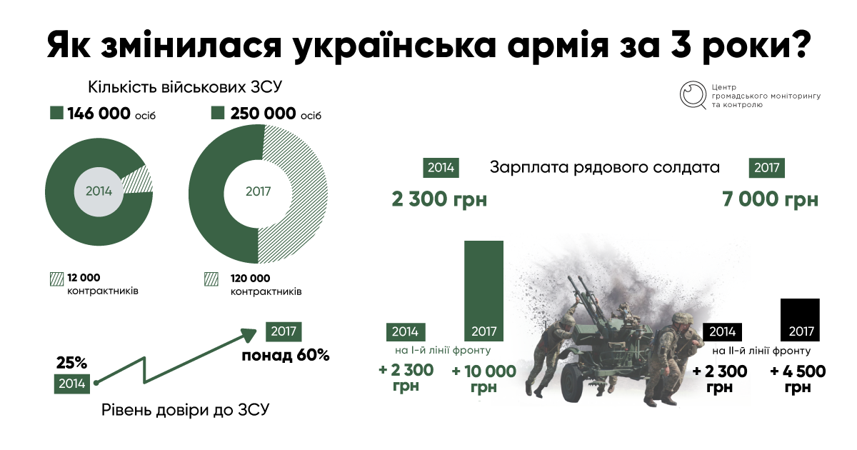 ІНФОГРАФІКА ПРО ЗМІНИ В УКРАЇНСЬКІЙ АРМІЇ ЗА 3 РОКИ