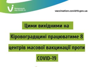 ЦИМИ ВИХІДНИМИ НА КІРОВОГРАДЩИНІ ПРАЦЮВАТИМЕ 8 ЦЕНТРІВ МАСОВОЇ ВАКЦИНАЦІЇ ПРОТИ COVID-19