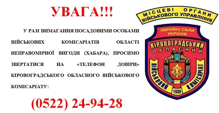 КІРОВОГРАДСЬКИЙ ОБЛАСНИЙ ВІЙСЬКОВИЙ КОМІСАРІАТ ПОВІДОМЛЯЄ!
